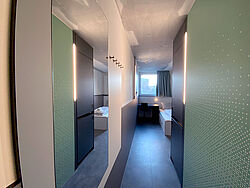 Personen mit Mobilitätseinschränkungen oder Rollstuhlfahrer werden gebeten, den Check-in während der Rezeptionszeiten vorzunehmen. Das Team wird Ihnen eine zusätzliche Schließkarte aushändigen, da der Nachtzugang nicht barrierefrei ist und der Aufzug nur über das Treppenhaus erreichbar ist.